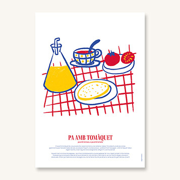 Illustration from the Catalan gastronomy collection. Pan con tomate (tomato bread) is a simple and essential gem of Catalan and Balearic cuisine.