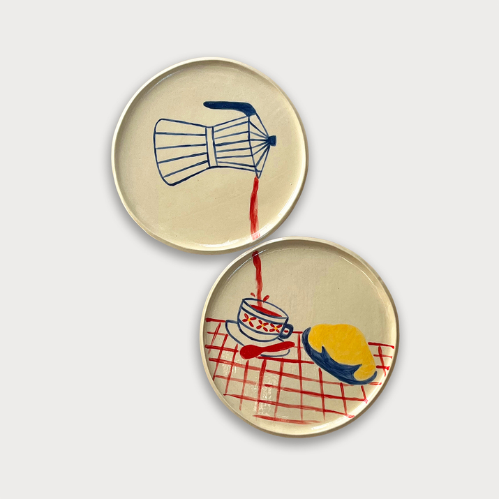 Dos platos combinados para colgarse de decoración o usar para servir desayunos o meriendas.