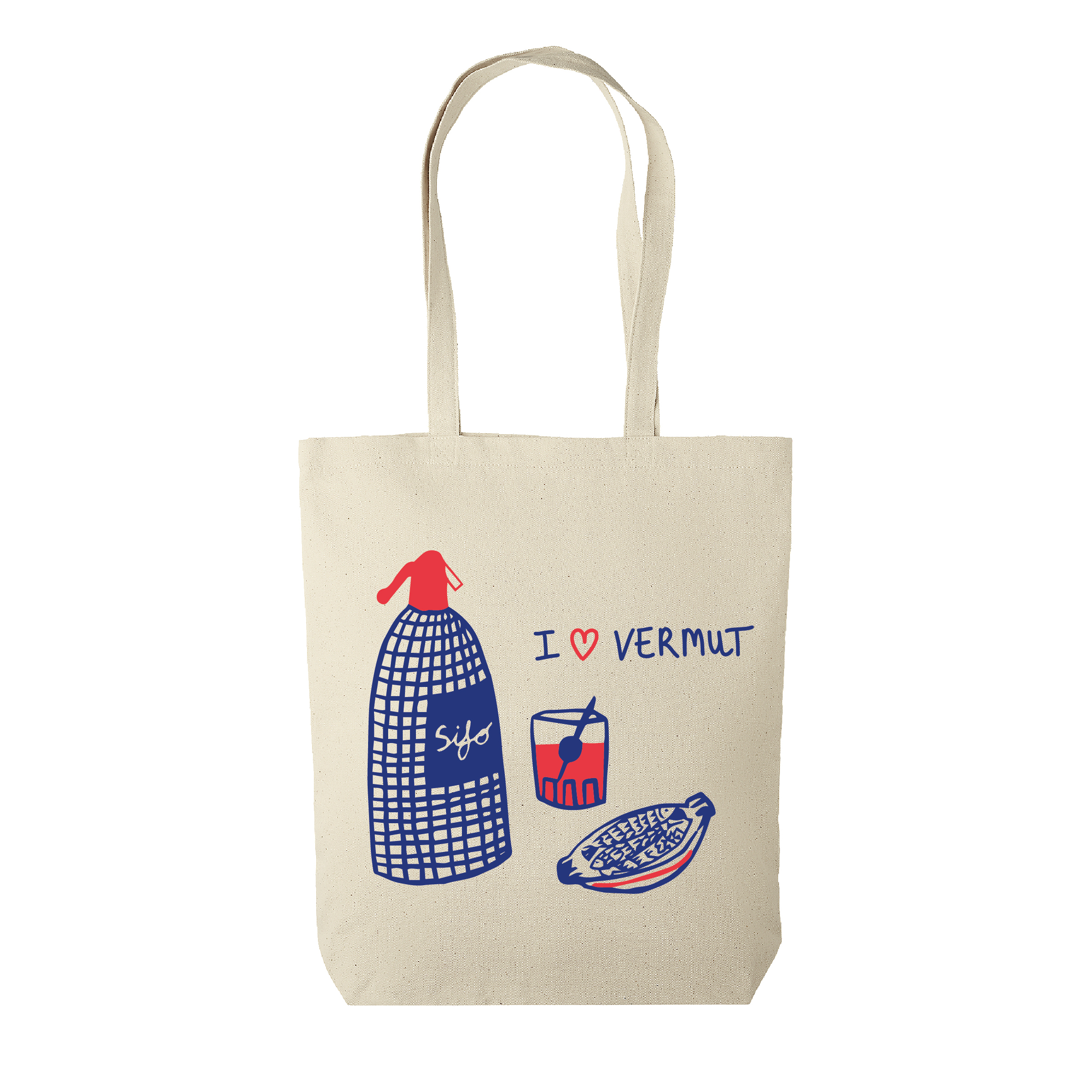 Bolsa de tela (tote bag) color natural para las amantes del vermut del domingo.